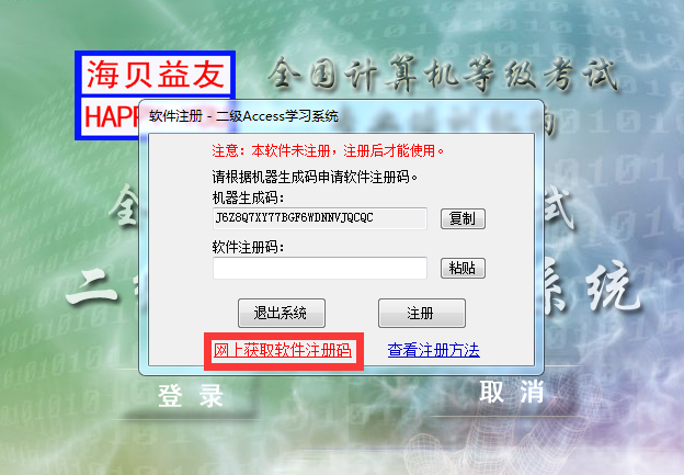 | 1. 在软件注册窗口中,单击【网上获取软件注册码】,打开软件注册码生成网页。 |