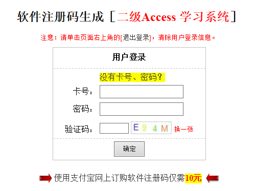 | 2. 在软件注册码生成网页中,分别输入【卡号】、【密码】和【验证码】信息,单击【确定】按钮,打开输入机器生成码网页。 |