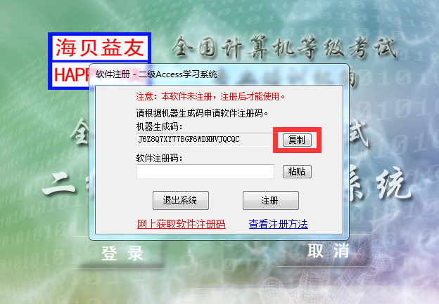 | 3. 在软件注册窗口中,单击【复制】按钮,复制机器生产码。 |
