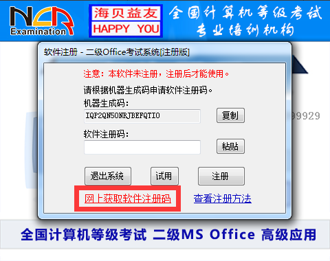 | 1. 在软件注册窗口中,单击【网上获取软件注册码】,打开软件注册码生成网页。 |