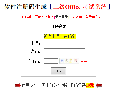 | 2. 在软件注册码生成网页中,分别输入【卡号】、【密码】和【验证码】信息,单击【确定】按钮,打开输入机器生成码网页。 |